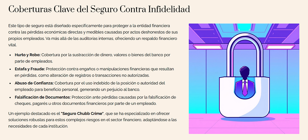 Muy buena información. Me parece muy importante que todas las entidades financieras cuenten con este tipo de coberturas, ya que muchas veces el fraude y la falsificación de documentos se pasan por alto, pero en la actualidad son riesgos cada vez más frecuentes.